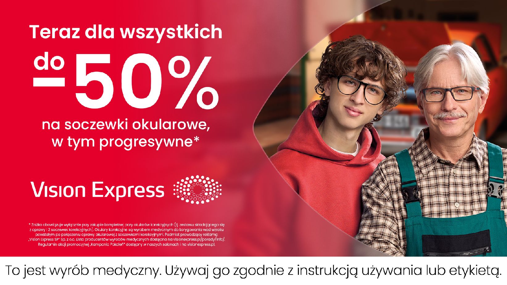 W Vision Express dbamy o wzrok każdego z Was, abyście widzieli to, co naprawdę ważne. Dlatego teraz, dla każdego z Was - niezależnie od wieku - mamy do 50% zniżki na soczewki okularowe, w tym progresywne*.