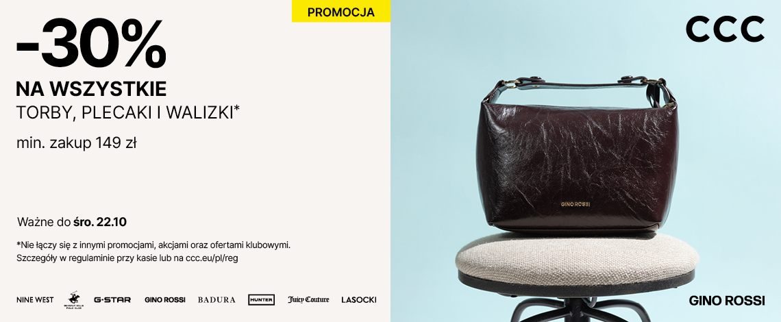 Torebka do biura, plecak na zajęcia i walizka na weekendowe wyjazdy... Z CCC pakowanie to świetna sprawa, gdy wszystkie plecaki, torby i walizki masz 30% taniej. Zrób zakupy za minimum 149 zł i skorzystaj z supercen w CCC! Szczegóły w regulaminie.